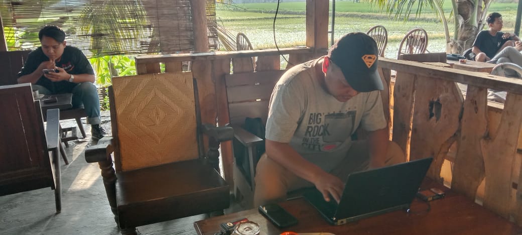 Seorang pengunjung yang sedang mengerjakan pekerjaanya di luar kantor (foto : mardianto/dok.ideNews)